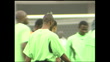 GVs Nigeria World Cup squad kicking balls around on pitch at training session PAN, LMS SIDE Nwanko Kanu (Nigerian Football Payer) along onto pitch, MS Taribo West (Nigerian Footballer) along on pitch at training pitch, LBV Nigerian squad on pitch around coach, LBV coach kicking ball along, BV Taribo West along at training session, LS Nigerian squad training on pitch, LMS Nwanko Kanu along at training session.