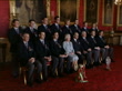 England cricket team receive honours; Buckingham Place:INTQueen Elizabeth II (wearing pale green jacket and skirt) speaking with Michael Vaughan (England CC Captain) and others (not heard)Side view of Vaughan and Matthew Hoggard (England CC) Prince Philip, Duke of Edinburgh, speaking with Geraint Jones (England CC) (not heard)Prince Philip speaking with people in reception roomQueen sitting inbetween Prince Philip and Vaughan, taking part in group photo with England cricket team PULL OUT