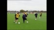 GVS players jogging round training pitch, Scholes walking along, Alan Smith walking along, Gerrard along, players juggling ball, Kevin Phillips training, Chris Powell training, Danny Mills training