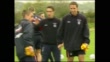 Players in group with Sven Goran-Eriksson (England Manager), Trevor Sinclair jogging along, GVS group with Eriksson, GVS players walking along, players play keep ball