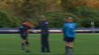 RUGBY UNION: England team training; Rugby backs passing ball in training / More shots of England players taking part in training exercises, including Ugo Monye / England forwards tackling and running with ball