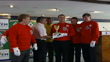 GVS Sir Geoff Hurst seated as poses for photocall with replica World Cup / Hurst holding replica world cup / Hurst & Martin Peters pose with replica / 1966 World Cup squad with Terry Venables pose for photocall holding replica World cup / press