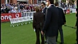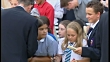 CLEAN: England's Ashes winning players celebrate their victory with fans. Shows exterior shots Michael Vaughan talking to a reporter & Andrew Flintoff & Matthew Hoggard signing autographs for children. on September 13, 2005 in London, England.