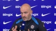 COBHAM, ENGLAND - JANUARY 31: Enzo Maresca, Chelsea manager, speaks about Marc Guiu physical condition ahead of their Premier League match against West Ham United during a press conference at Chelsea Training Ground on January 31, 2025 in Cobham, England. (Footage by Niche Sport Media via Getty Images)