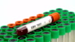 Test tube with blood sample for Epstein-Barr virus (EBV) test//4K 3840x2160 / 29.97p / Photo-JPEG / Real Time /