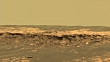 "Martian landscape, true-colour panorama, obtained by the Opportunity Mars Exploration Rover (MER-B). This is the Payson outcrop on the western edge of the Erebus crater. The crater wall (orange) is about one metre thick, and was formed by the impact event that formed the crater. Opportunity landed in the Meridiani Planum region of Mars in January 2004. The colours of the image were created by combining camera filters to approximate what a human would see. This 90-degree panorama was obtained on 26 February 2006, on the 744th Martian day of the rover's mission."