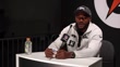 SAN JOSE, CALIFORNIA - FEBRUARY 2: Ernest Jones #13 of the Seattle Seahawks says Sam Darnold does not listen to the noise and is "one of the strongest dudes I've ever met" at Super Bowl LX Opening Night at San Jose McEnery Convention Center on February 2, 2026 in San Jose, California. (Footage by Kaelin Mendez/Getty Images)