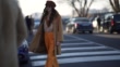 MILAN, ITALY - JANUARY 12: Estelle Chemouny wears a brown beret hat, aviator sunglasses, a beige suede coat, a pink Prada bag, orange pants, Prada sneakers shoes, outside MSGM, during Milan Fashion Week Menswear Fall/Winter 2020/2021, on January 12, 2020 in Milan, Italy. (Footage by Edward Berthelot/Getty Images)
