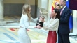 MADRID, SPAIN - APRIL 4: Ester Ledecka (L) receives the 'Union Europea' sport award from King Felipe VI of Spain and Queen Letizia of Spain during the 2022 National Sports Awards on April 4, 2024 in Madrid, Spain. (Footage by Borja Benito Hojas/Getty Images)