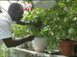 Ethnic kidney donor shortage; CS Wheel on machine turning as blood passed along tubeCMS Blood in tubeJames Mills homeCMS SIDE James Mills (W Indian kidney patient) tending plants in greenhouseCS Fruit on plantMS Mills setting up dialysis machineCS MachineCMS SIDE Mills sits as on dialysis machineCMS James Mills intvw SOF hoping for new kidney