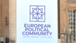 Leaders departing from stand after photocall and along into palace building / 'European Political Community' sign