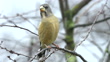 Evening Grosbeaks are large, heavyset finches with very thick, powerful, conical bills. They have a thick neck, full chest, and relatively short tail. Females and immatures are mostly gray, with white-and-black wings and a greenish-yellow tinge to the neck and flanks. The bill is pale ivory on adult males and greenish-yellow on females.