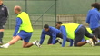 Premier League: Everton FC training session; ENGLAND: Merseyside: Finch Farm:EXTDavid Moyes (Manager, Everton FC) watching players / General view Everton team stretching legs in warm-up, including shot of James Vaughan / David Moyes watching / More of players stretching, including Phil Neville (Captain), Leon Osman, Tim Cahill, Joseph Yobo, Marouane Fellaini, Andy van der Meyde