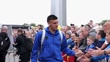 LEEDS, ENGLAND - AUGUST 18: (SLOW-MO) Everton striker Joel Piroe arrives at the stadium ahead of the Premier League match between Leeds United and Everton at Elland Road on August 18, 2025 in Leeds, England. (Footage by George Wood/Getty Images)