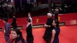 BERLIN, GERMANY - FEBRUARY 14: Evin Ahmad (Sweden), Clare Dunne (Ireland), Emilio Sakraya (Germany), Gracija Filipovic (Croatia), Federal Commissioner for Culture and Media Claudia Roth, Joao Unes Monteiro (Portugal), Timon Sturbej (Slovenia), Anamaria Vartolomei (France), Souheila Yacoub (Switzerland), Marie Reuther (Denmark) and Hanna van Vliet (The Netherlands) attend the "Un ano, una noche" (One Year, One Night) premiere & European Shooting Stars 2022 award ceremony red carpet during the 72nd Berlinale International Film Festival Berlin at Berlinale Palast on February 14, 2022 in Berlin, Germany. (Footage by Christian Ender/Getty Images)