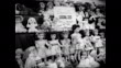 Exhibition center with dozens of stands and people milling about / union leaders standing with Secretary of Labor, Arthur Goldberg, discussing exhibits / CIO President George Meany / crowd studying exhibits / fashion show and doll display / ceramic painting demonstration / man sheering a sheep / savings bond stall. (HD is 4x3 pillar box and may be scaled up to 16x9) Unions display progress at Detroit labor exhibition on April 20, 1961 in Detroit, Michigan