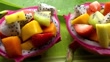 Exotic fresh colorful tropical fruit salad. - 4K stock video