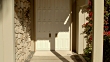 POV DS exterior entryway to main door of mid-century modern home - HD stock video