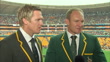 CLEAN: Exterior shot famed South African Rugby Union ex player, Francois Pienaar interview thanking Nelson Mandela for what he did for the Springboks. Francois Pienaar Interview Speak About Mandela on December 10, 2013 in Soweto, South Africa (Footage by Sky News/Getty Images)