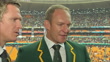 CLEAN: Exterior shot Francois Pienaar talking about the positive influence of sport & how Mandela believed this would help heal the country. Francois Pienaar On Positive Influence Of Sport on December 10, 2013 in Soweto, South Africa (Footage by Sky News/Getty Images)