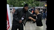 CLEAN: Exterior shots of boxers Prince Naseem Hamed and Lennox Lewis having a joke sparring match prior to meeting Prince Charles at a Princes' Trust event on 7 July 2002 in London, United Kingdom