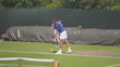 CLEAN: Exterior shots of Daniil Medvedev practising his serve during training ahead of the Wimbledon Championships on 29 June 2024 in London, England.