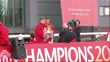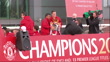 CLEAN: Exterior shots of David De Gea and Anders Lindegaard on top of Champions parade bus holding Premier League trophy on 13th May 2013 in Manchester, United Kingdom.