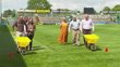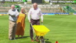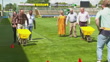 CLEAN: Exterior shots of Ed Davey, leader of the Democratic Party, takes part in wheelbarrow race at Huish Park Stadium during the general election campaign on the 17th of June 2024, in Yeovil, Somerset, Unted Kingdom