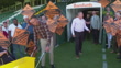 CLEAN: Exterior shots of Ed Davey, leader of the Democratic Party, takes part in wheelbarrow race at Huish Park Stadium during the general election campaign on the 17th of June 2024, in Yeovil, Somerset, Unted Kingdom