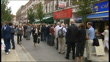 CLEAN: Exterior shots of people queuing outside the Northern Rock Building Society Kingston upon Thames branch during the financial crisis credit crunch on 14th September 2007 in Surrey, England, United Kingdom