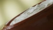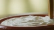Extreme close up Camera moves over a bowl of sour cream stirred with a wooden spoon. - 4K stock video