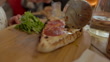 Family have ordered a pizza for lunch and they are enjoying eating pizza.