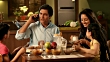 MS Family having breakfast together at home, father talking on smart phone / Delhi, India - 4K stock video