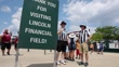 PHILADELPHIA, PENNSYLVANIA - JULY 23: Fans arrive to the stadium as a sign that reads: "Thank You For Visiting Lincoln Financial Field!" stands ahead the Premier League Summer Series match between Aston Villa and Newcastle United at Lincoln Financial Field on July 23, 2023 in Philadelphia, Pennsylvania. (Footage by Tim Nwachukwu/Getty Images)