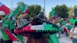 INGLEWOOD, CALIFORNIA - JULY 16: Fans play music and hold Mexican flags as they arrive to the stadium ahead of the Concacaf Gold Cup final match between Mexico and Panama at SoFi Stadium on July 16, 2023 in Inglewood, California. (Footage by Ronald Martinez/Getty Images)