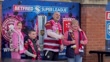 MANCHESTER, ENGLAND - OCTOBER 12: (EDITORS NOTE: Footage contains possible profanity.) Fans pose for photos as they arrive ahead of the Betfred Super League Grand Final between Wigan Warriors and Hull Kingston Rovers at Old Trafford on October 12, 2024 in Manchester, England. (Footage by Gareth Copley/Getty Images)