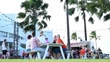 TOWNSVILLE, AUSTRALIA - FEBRUARY 26: (EDITORS NOTE: audio/music licensing is not included.) Fans sit at picnic tables near a food truck ahead of game one of the WNBL Grand Final series between Townsville Fire and Perth Lynx at Townsville Entertainment Centre on February 26, 2026 in Townsville, Australia. (Footage by Albert Perez/Getty Images)