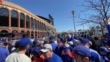 NEW YORK, NEW YORK - APRIL 15: Fans take photos as the Tom Seaver statue is unveiled outside the stadium before the New York Mets home opening game against the Arizona Diamondbacks at Citi Field on April 15, 2022 in New York City. All players are wearing the number 42 in honor of Jackie Robinson Day. (Footage by Al Bello/Getty Images)
