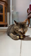 Fat Tabby cat biting cat chew sticks - 4K stock video