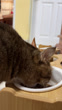 Fat tabby cat eating cat food
