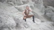 Female Beauty In Brown Bodysuit Taking Break While Climbing On Rocky Terrain - 4K stock video