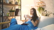 Female Taking A Sip Off Of Warm Tea To Help Her Fall Asleep - 4K stock video