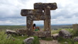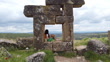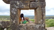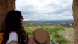 Female traveller girl is watching the landscape of Blaundus ancient city ruins in Ulubey Usak Turkey - 4K stock video