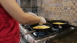 Female worker making scrambled eggs in restaurant kitchen - HD stock video