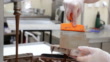 Filling molding cast with pouring milk chocolate - 4K stock video