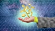 Gold coins spin in an endless loop above hand of Gen Z woman