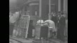 Firemen, some spraying water on ground covered with debris, few watching by railroad tracks, houses in bg / firemen, water spraying from hoses, ruins cover ground / firemen amid spray and smoke, can make out smokestack and structures / destroyed buildings / furniture by sidewalk, woman going through bureau drawer, men nearby, houses in bg / flames leap from row of alcohol tanks in Westwego, water tower atop building and smoke streaming from smokestack in bg, can see water sprays / sprays on tanks / Note: exact day not known