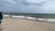 A fisherman reeled in a small shark at Long Island's Jones Beach in Wantagh, New York, on September 5. Video filmed by Marcia Avila shows the catch. "My husband and I were walking along Jones Beach on Labor Day and came across this fisherman struggling with a catch. He said that usually he catches striped bass and blues. He caught the brown shark, which is endangered, removed the hook, and returned it to the water. We saw it swim back into the ocean," Avila told Storyful. (Footage by Marcia Avila/Storyful via Getty Images UGC)