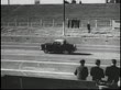 / FADE UP WS flag man on raised platform at Raleigh Speedway / WS Nash Metropolitan starts to accelerate on track / MS POV looking through windshield as Nash drives on track / DISSOLVE TO WS Nash getting refueled without stopping / WS timing booth in bleachers / WS tracking shot of Metropolitan slowing down to change drivers without stopping / DISSOLVE TO Nash rounding a turn / WS Nash crossing the finish line / WS Metropolitan pulling into the pits. Nash Metropolitan performance tests on race track at Raleigh Speedway on December 07, 1953 in Raleigh, North Carolina (Footage by Getty Images)