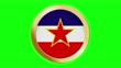 Flag of Yugoslavia Pop-up style in a Golden Metal Ring Circle National Flag Animation Background isolated green Screen Background Loopable Stock Video